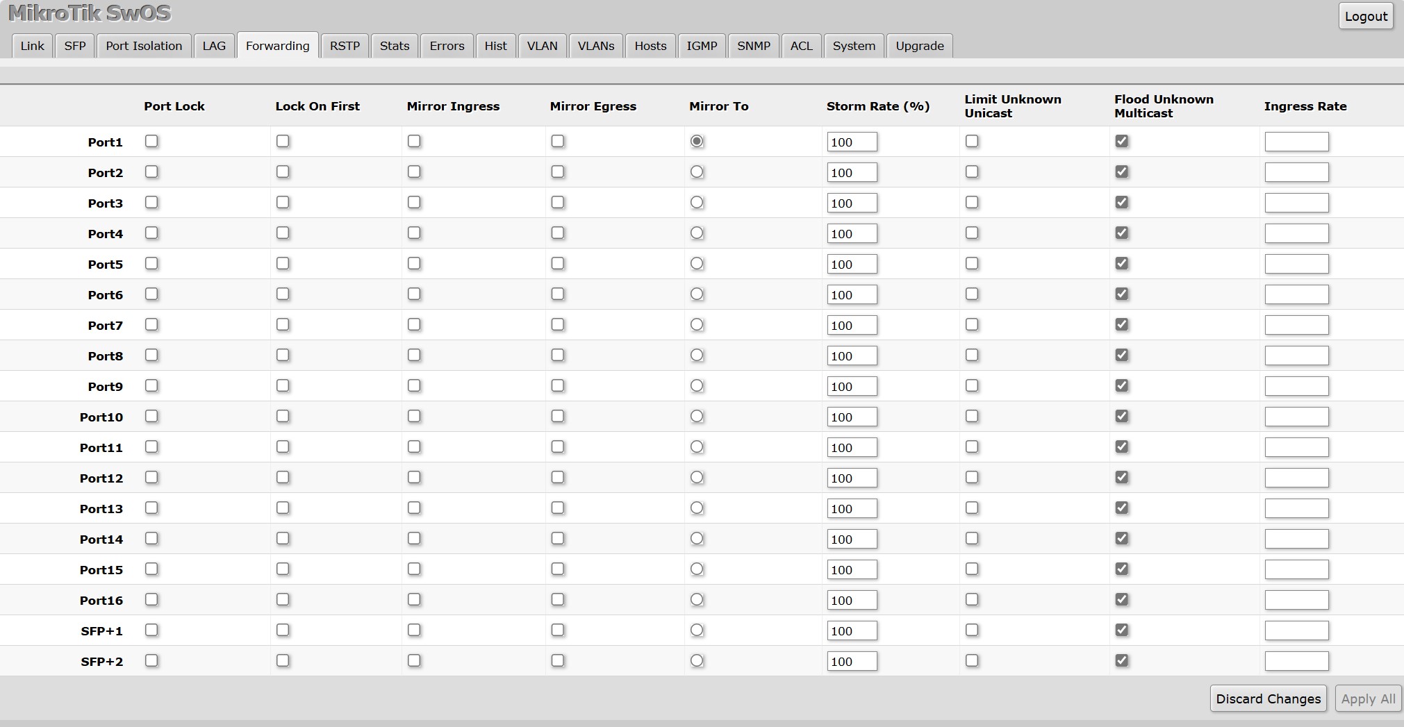 MikroTik CSS318 16G 2S+IN SwOS Forwarding