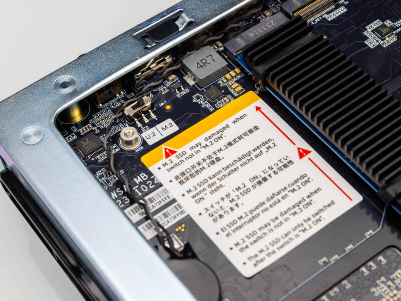 The system came with a M.2 to U.2 adapter. Of course, M.2 drives use a lot less power, so there is a switch on the motherboard, with a giant warning label, to change the M.2 slot to a higher-power mode. That switch is very important. If you have it set to the U.2 mode, and try installing a M.2 drive, there is a solid chance that it will damage the M.2 drive. Hence, the giant warning label.