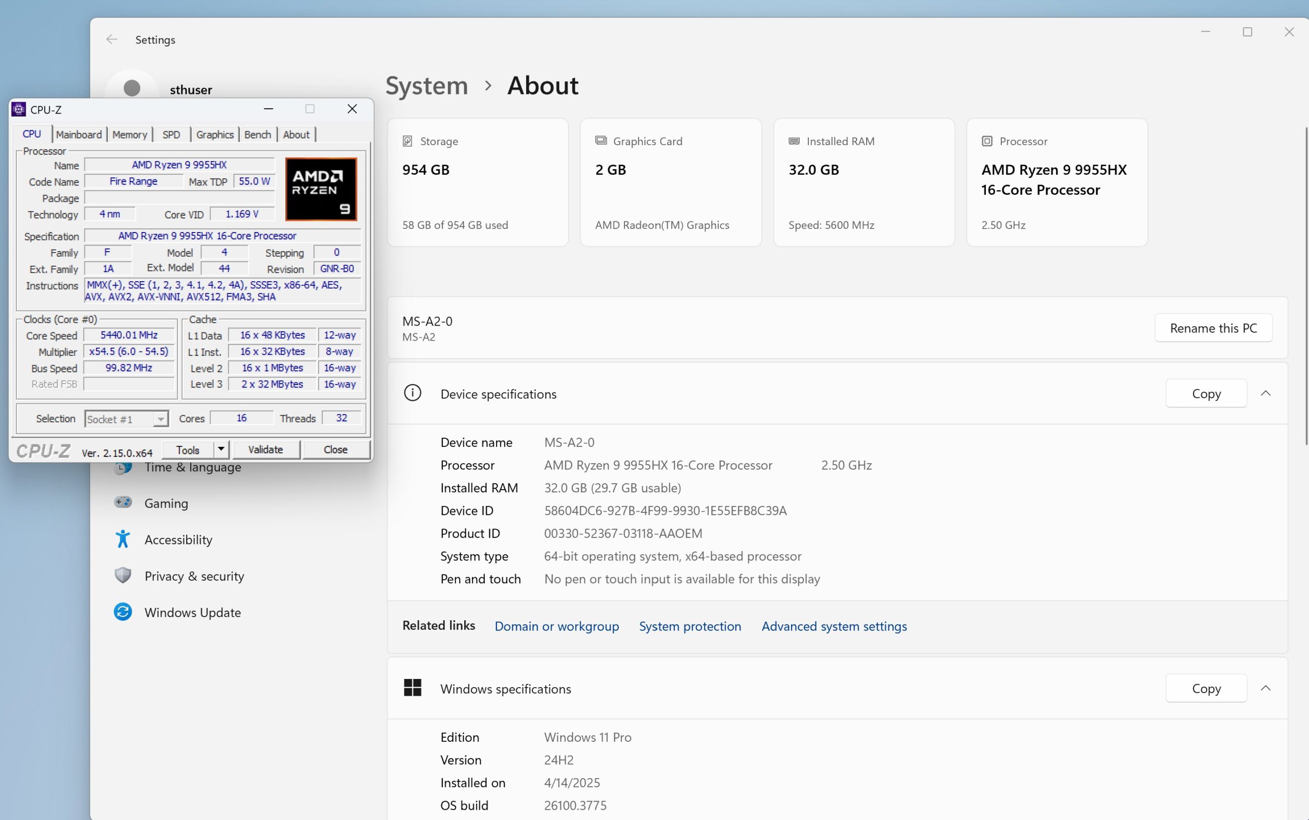 Minisforum MS A2 CPU Z And System
