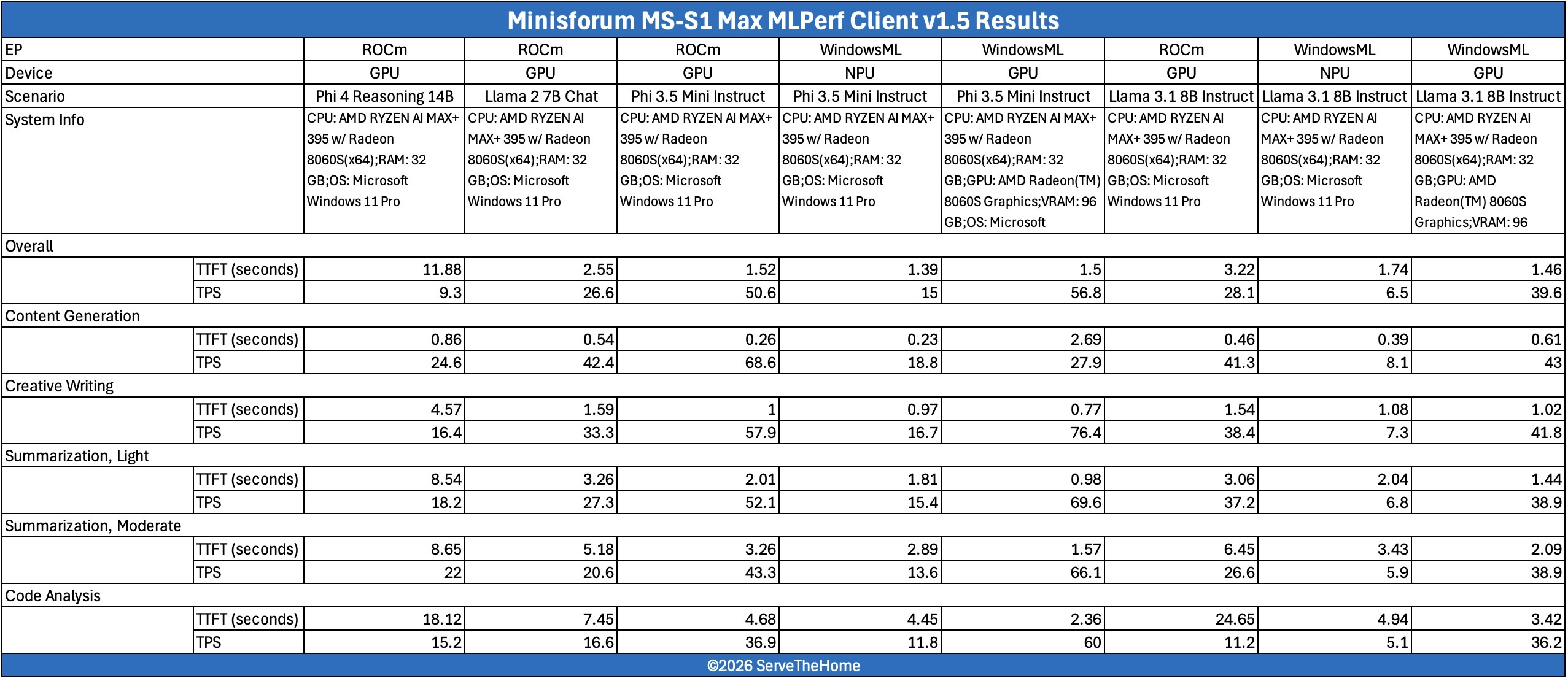 Minisforum MS S1 Max MLPerf Client V1.5 Results