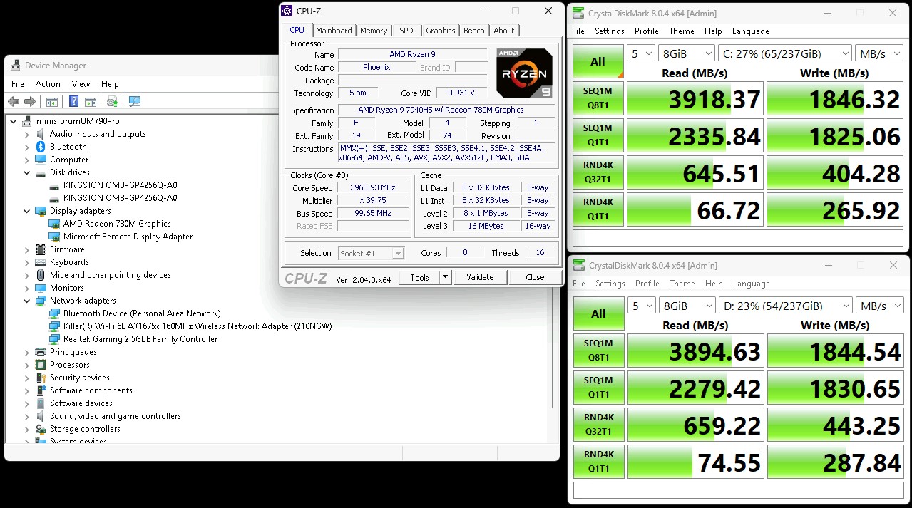 Minisforum UM790 Pro Device Manager CPU Z And CDM