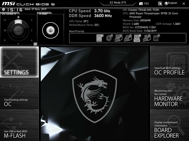 The MSI Creator TRX4 Motherboard BIOS is very much like past MSI motherboards we have reviewed. It allows a fast overclock through the top left OC Genie dial.