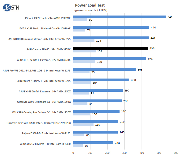 Although this is high, it is actually less than we saw with the previous generation 32-core AMD Ryzen Threadripper 2990WX chip which is impressive. It is also less than we are seeing with the Intel Xeon W-3275 platforms. Still, for those with aging single Intel Xeon E5 workstations, this is going to use more power, but provide significantly more performance for that power consumption delta.