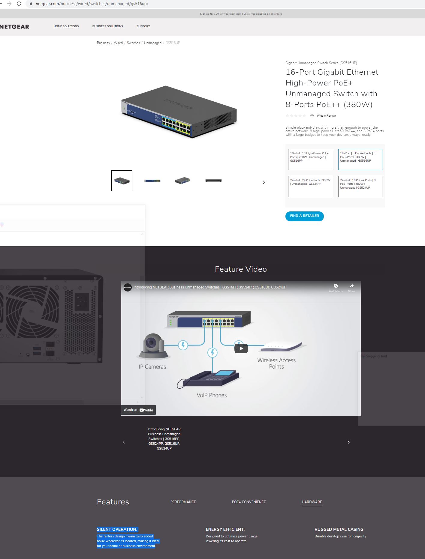 Netgear GS516UP Product Page Accessed 2022 01 07 Fanless Design