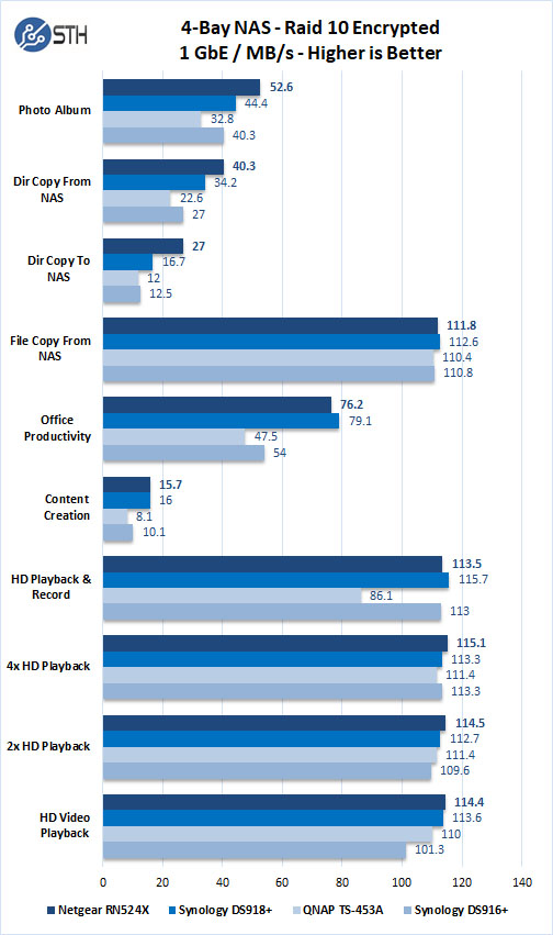 Let us move to 1GbE Encrypted tests. The Netgear RN524X only allows for the entire volume to be encrypted.