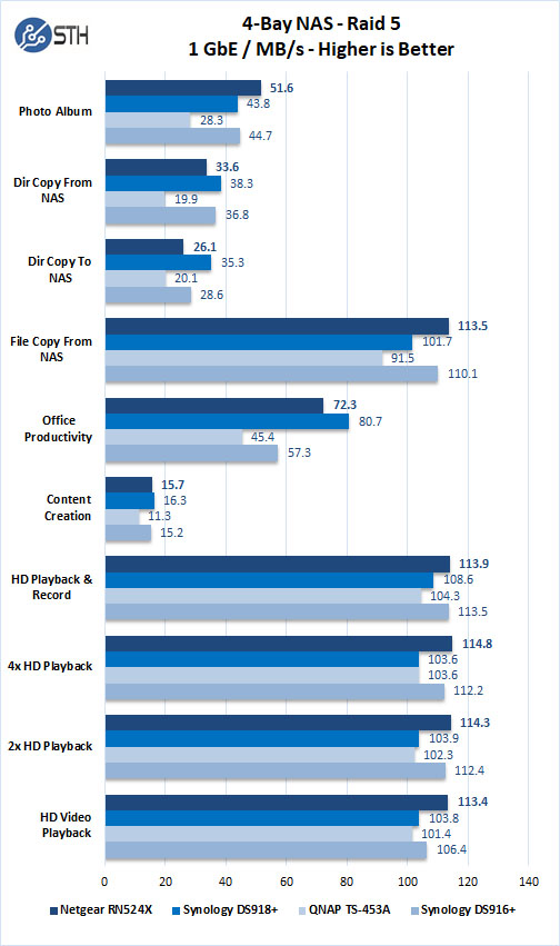 The Netgear RN524X can saturate the 1GbE LAN connection without issues and performs as expected.