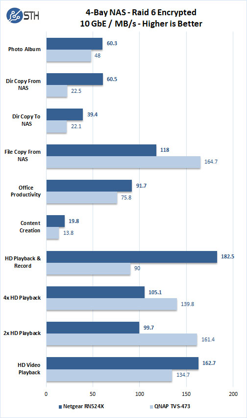 The Intel Pentium D1508 processor holds up very well in our encryption tests against the AMD R-Series RX-421BD Quad Core 2.1GHz processor in the other NAS. The key takeaway is that this unit simply obliterates 1GbE NAS units that are throttled by their network interfaces.