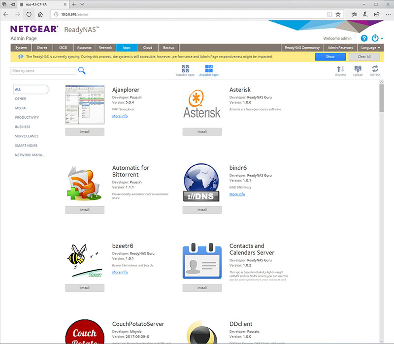 Like many NAS units, the RN524X also offers additional applications for users to install. The app library is not as extensive as some other offerings, but many are useful.