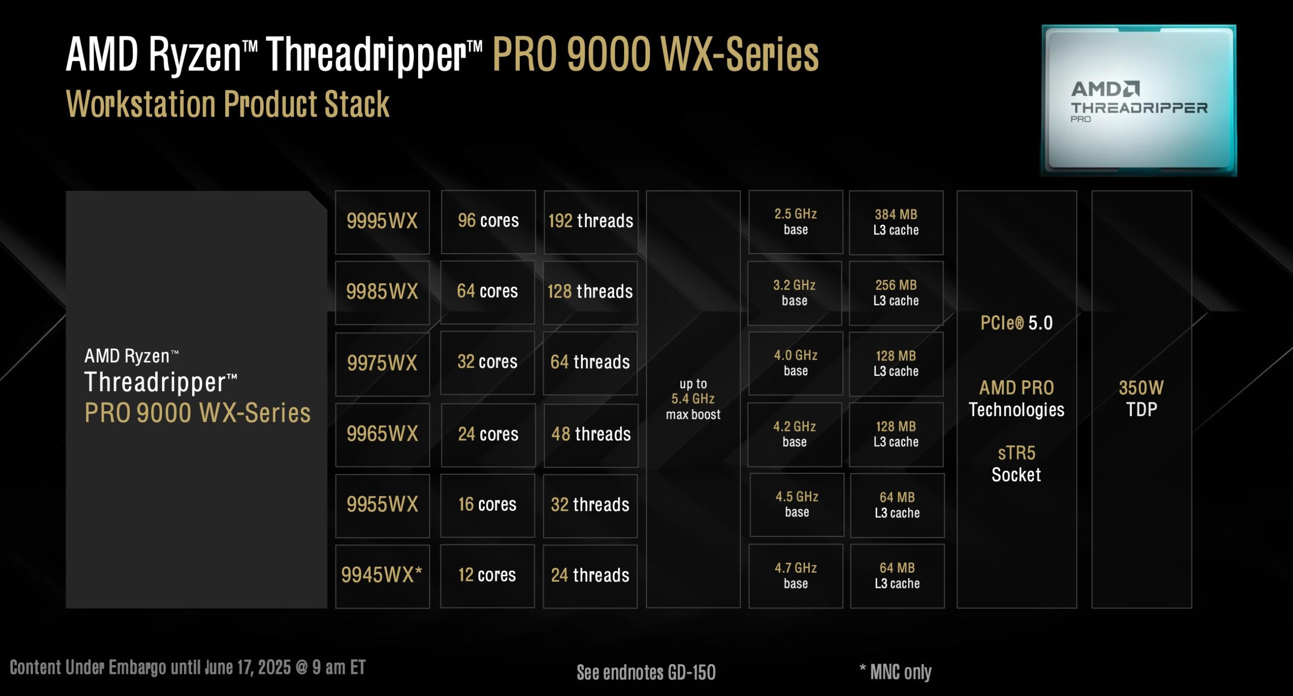 AMD Ryzen Threadripper Pro 9000 Series SKUs