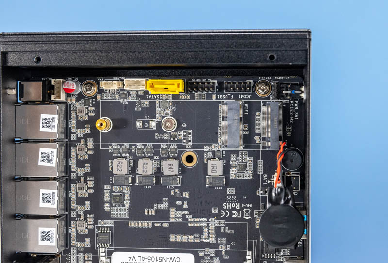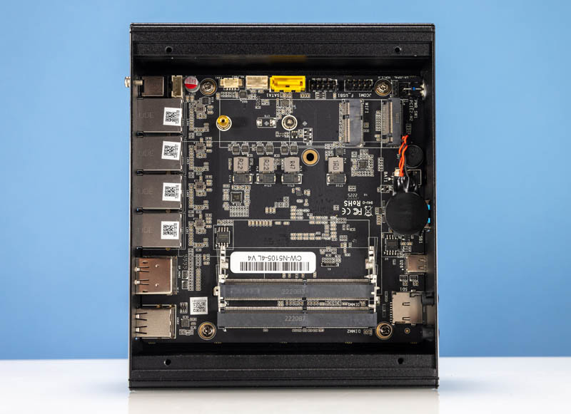 The motherboard on this one is the CW-N5105-4L V4. Notably, our i225 version of this with the V4 style motherboard did not have a sticker here, but appears to be the same unit with different NICs.