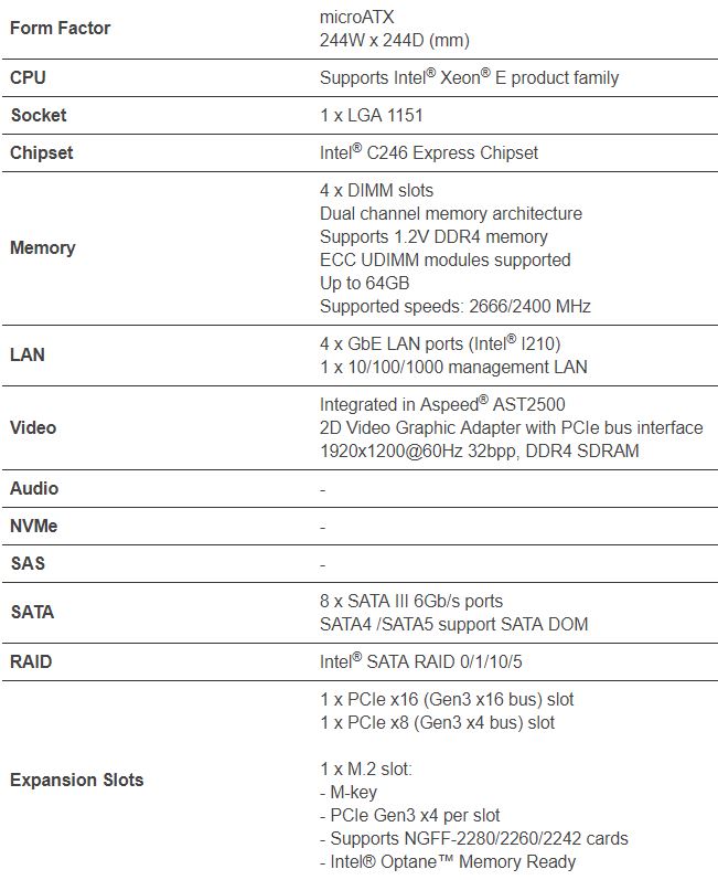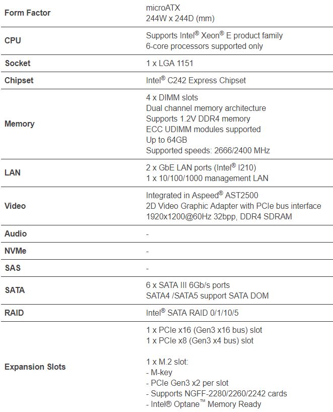 If you are looking to replace an Intel Xeon E3-1200 series quad-core CPU system with a 6-core Intel Xeon E-2100, then this is going to be an easy form factor to use.