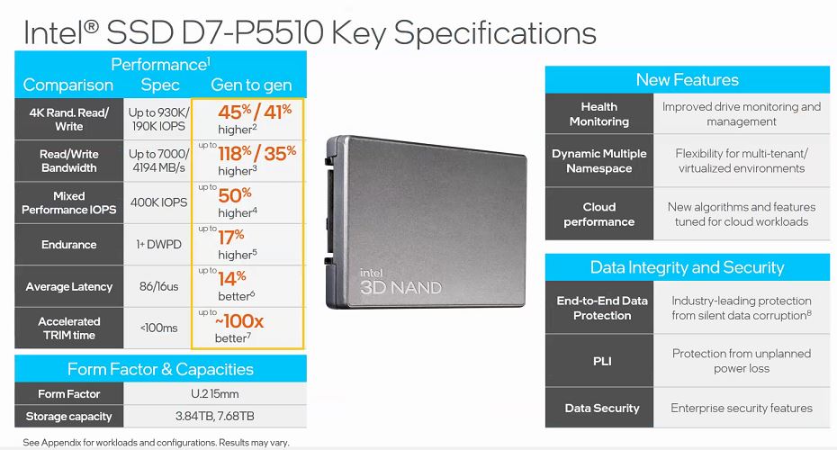 Intel SSD D7 P5510 Key Specs V P4510 1 DWPD