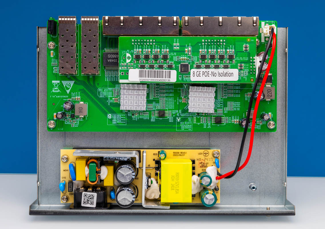 Here is the Nicgiga where if you rotate the above image, you can see that the main switch PCB is almost identical. We have an added PoE board and the DC barrel jack input on the Gigaplus is replaced with a power connector for the internal power supply on the Nicgiga.