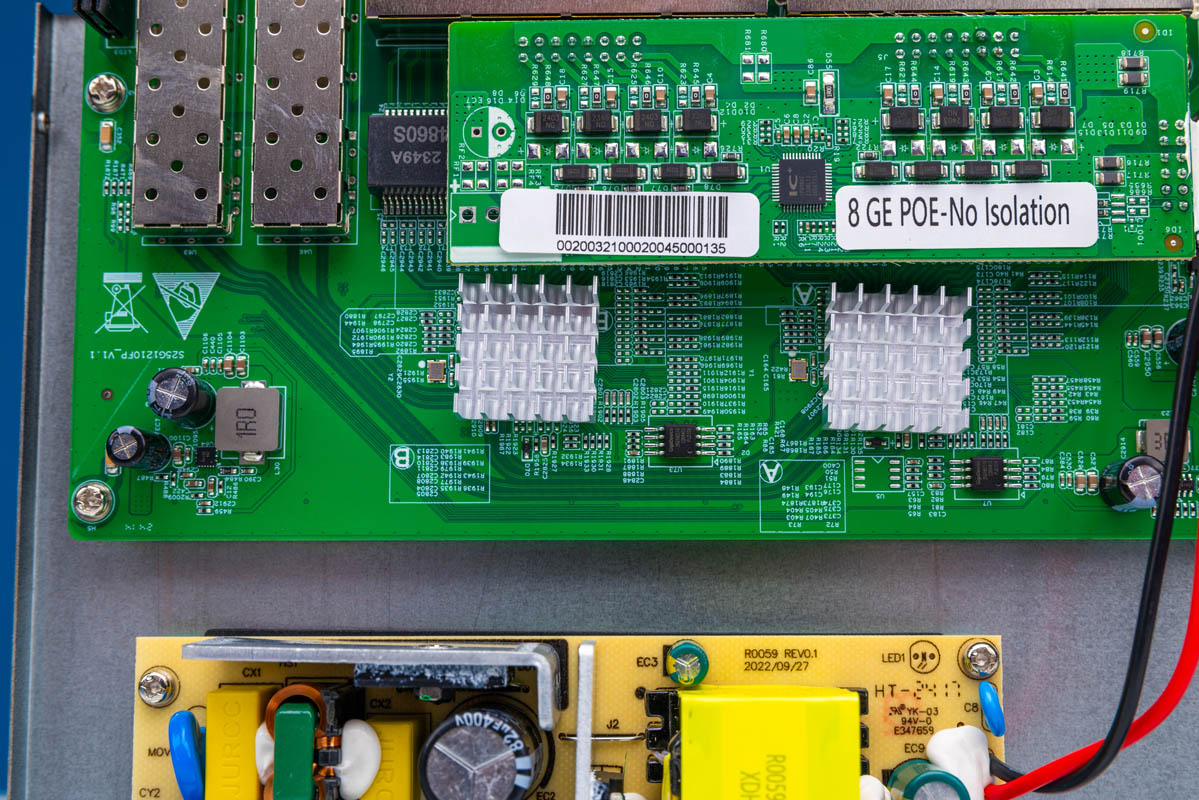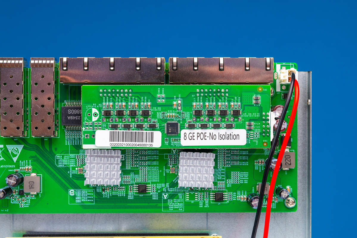 Here is where things take a bit of a turn. We can see that we have a PoE board that has a label “8 GE POE-No Isolation.” We did not test the isolation, but many will immediately think about IEEE 802.3at and isolated power supplies. That sticker tells us we likely have some cost optimized board that loses functionality.