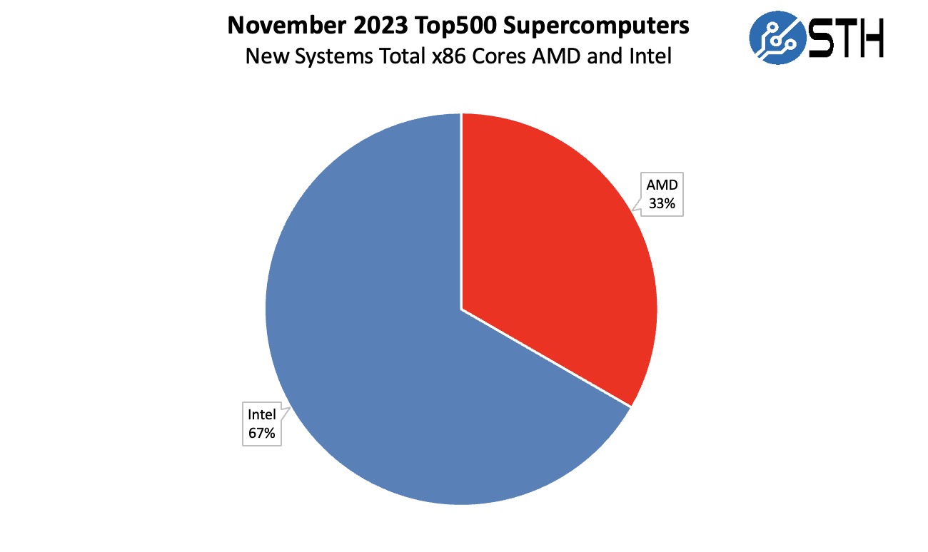 November 2023 New Top500 Systems By X86 CPU Cores