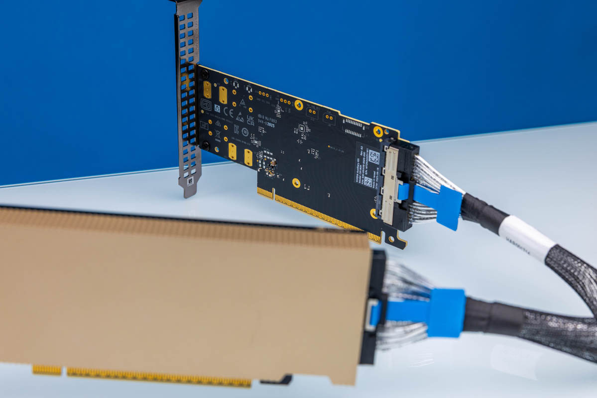 NVIDIA ConnectX 8 C8180 Connected To Aux X16 Kit With Cable 3