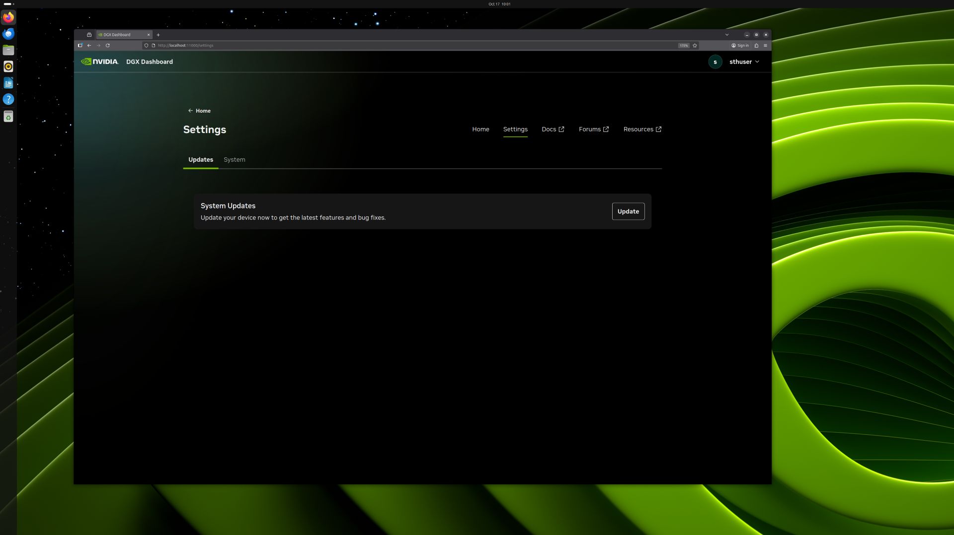 NVIDIA DGX Spark DGX Dashboard Settings Update