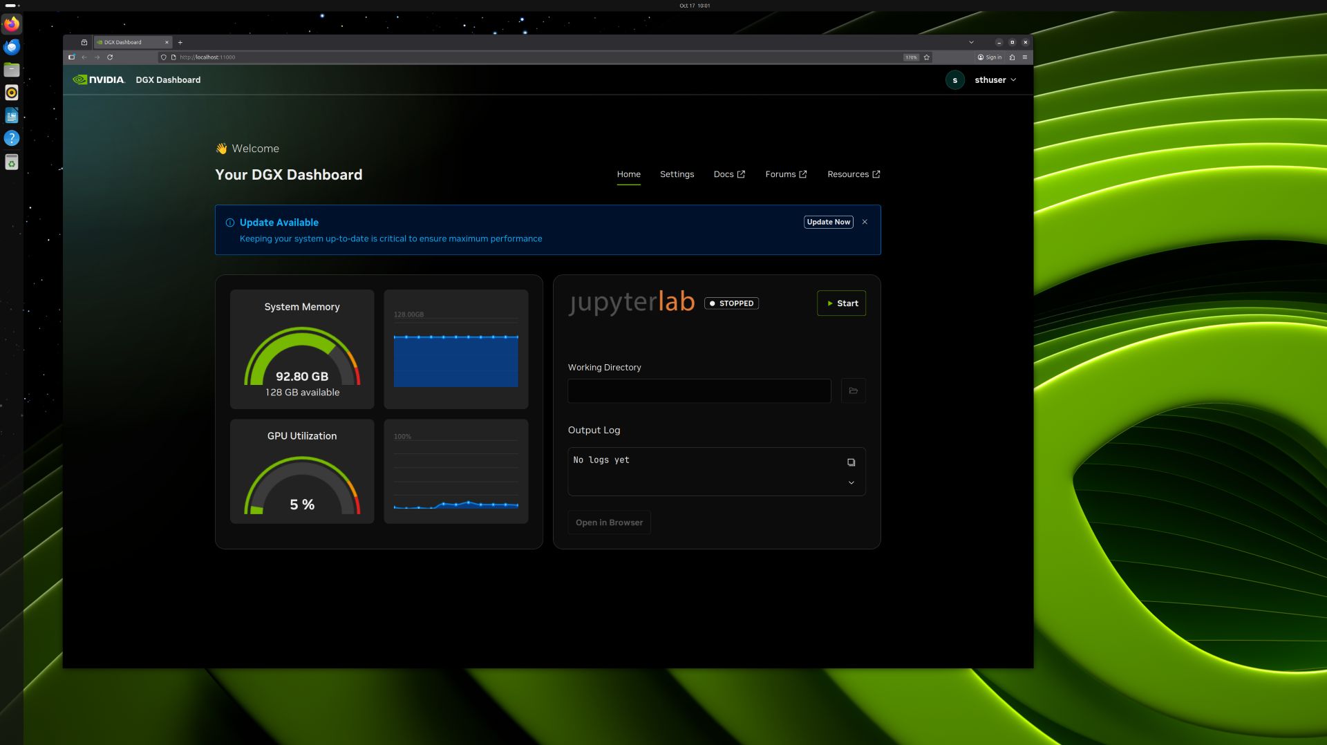 NVIDIA DGX Spark DGX Dashboard Update Available