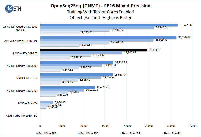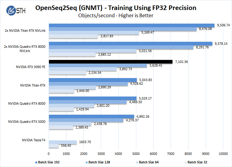 Overall, a high GDDR6X memory capacity and more modern Ampere architecture compute elements to make the GeForce RTX 3090 about as fast as 1.5x Titan RTXs on our training and inferencing workloads. While these are rapidly evolving spaces, there is a lot to be said for testing generational improvements because if one has a model they are currently using, effectively having a drop-in replacement of a larger/ higher-power GPU can yield massive benefits. We are going to get to the power consumption next, but while consumer and gaming websites may bemoan higher power on a per-card basis, it needs to be taken in the context of having multiple GPUs in a server.