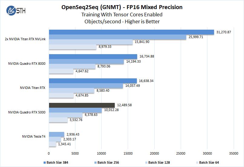 Here we saw performance beyond that of the NVIDIA GeForce RTX 2080 Ti. The RTX 2080 Ti is a very popular desktop deep learning card yet the Quadro RTX 5000 shows a nice performance leap.