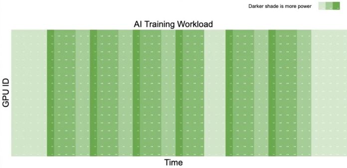 If you do not know this, when you have huge numbers of GPUs that transition from peak to valley can cause huge delta values in power being used. As a result, if you have something that needs to spin to power your cluster (e.g. a diesel generator, turbine, or something of that nature) the pattern above is very stressful since the power generation needs to quickly respond to the peaks and valleys of power.