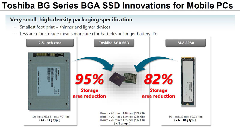 We had the opportunity to speak to Toshiba about the BG series earlier this week. One areas we added may be of particular interest to STH readers is for embedded applications. A more reliable embedded option than USB thumb drives may be welcome and we have seen a few next-generation server designs incorporate boot disk storage. For client applications, the small form factor and lower power characteristics mean smaller, thinner devices with longer battery life.