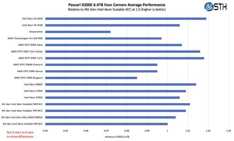 We see a similar trend to the previous PCIe Gen4 generation. Something that was small but notable is that Pascari seems to have a closer Intel to AMD gap for us across newer architectures. It is small but it is there.