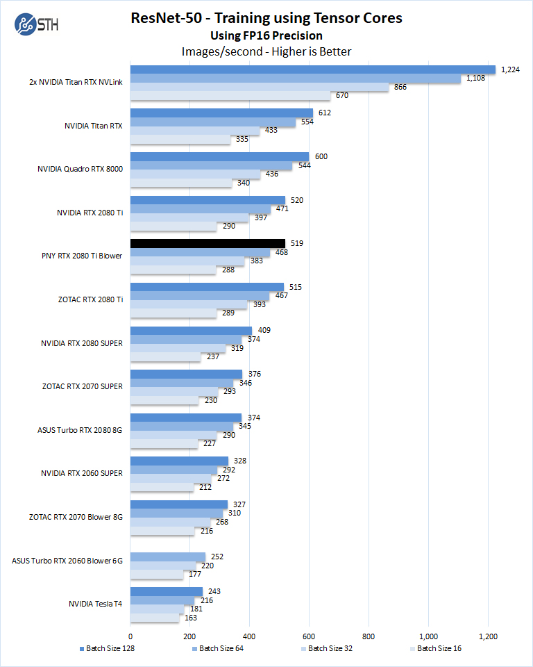 PNY RTX 2080 Ti Blower ResNet 50 Training Tensor Cores FP16