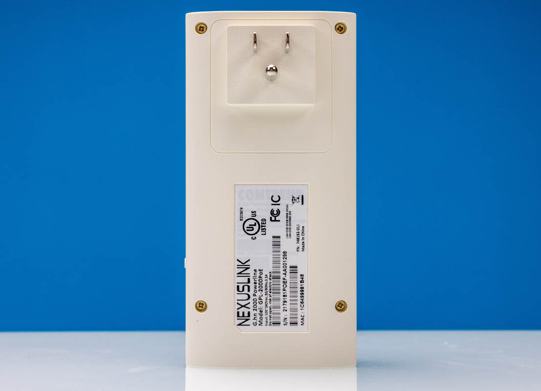 NexusLink GPL 2000PoE G.hn 2000 Powerline Adapter With PoE Plug And Label Side 1