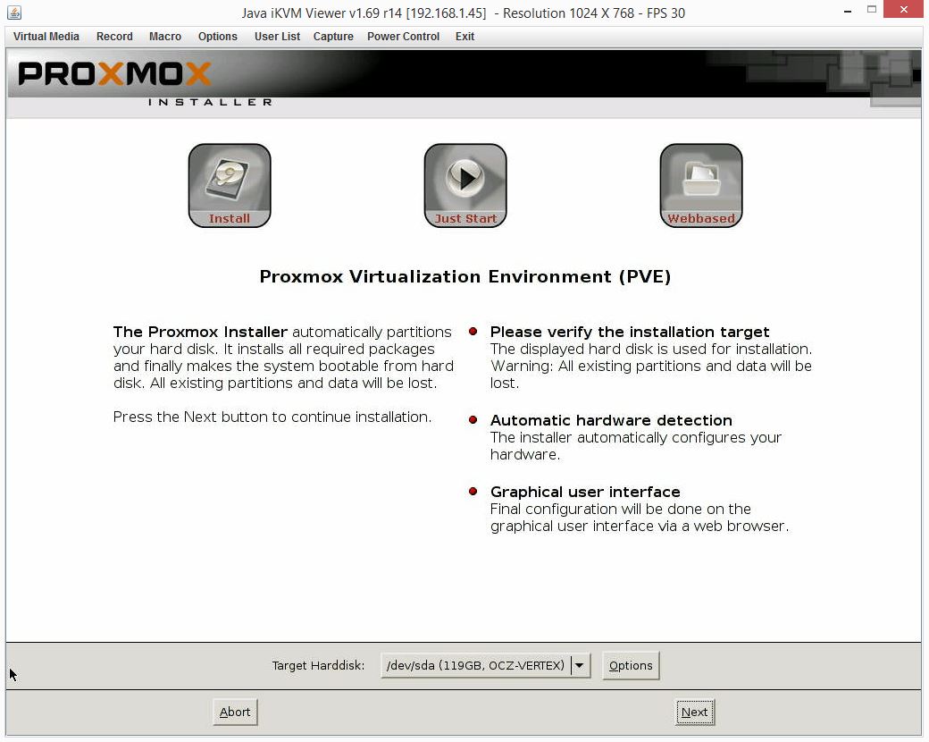 Proxmox VE 3.4 Installer Target Harddisk