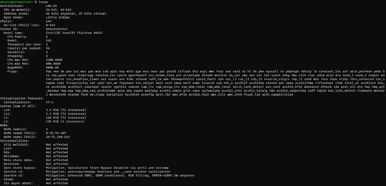PhoenixNAP BMC D3.m6.xlarge Intel Xeon Platinum 8452Y Lscpu