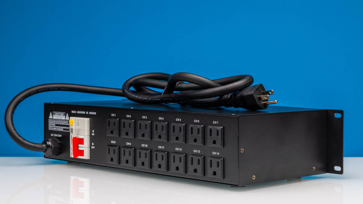 Pyle Pro 20 Outlet 3600W 2 RU Rackmount Power Conditioner Rear Angled 2