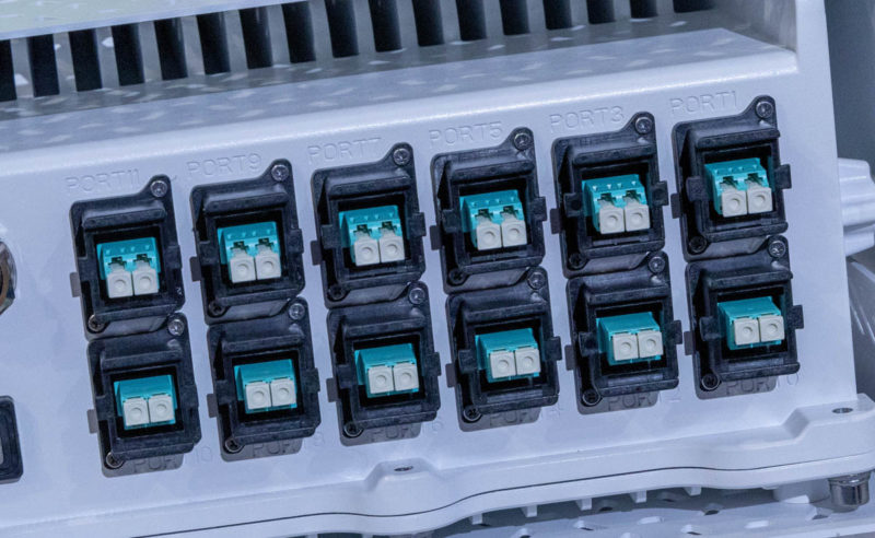 Since the event had limited space, it was not mounted on a pole, but that gave us a better vantage point for the fiber connections at the bottom of the unit.