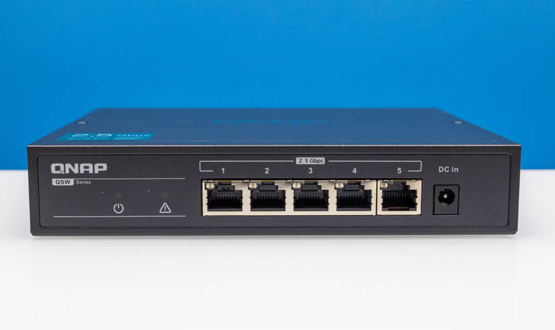 The front of the switch is very similar to other 5-port switches. There are simply five ports. Above each of the 2.5GbE ports, we have a set of status LEDs associated with each port and a key shown to the right. The DC input is on this front panel which some people prefer since it keeps all ports and cables on the same side of the chassis.