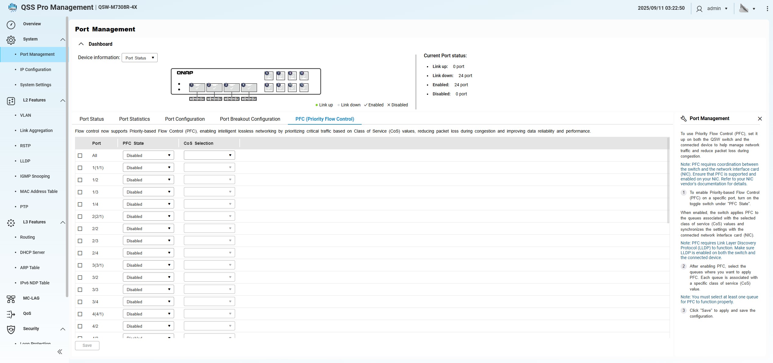 QNAP QSW M7308R 4X QSS Pro System Port Management PFC