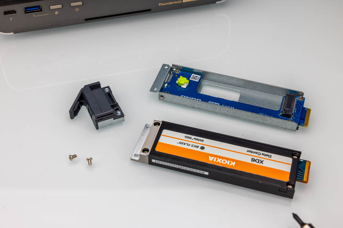 QNAP TBS H574TX Kioxia XD6 Installing QNAP E1.S Latch 1