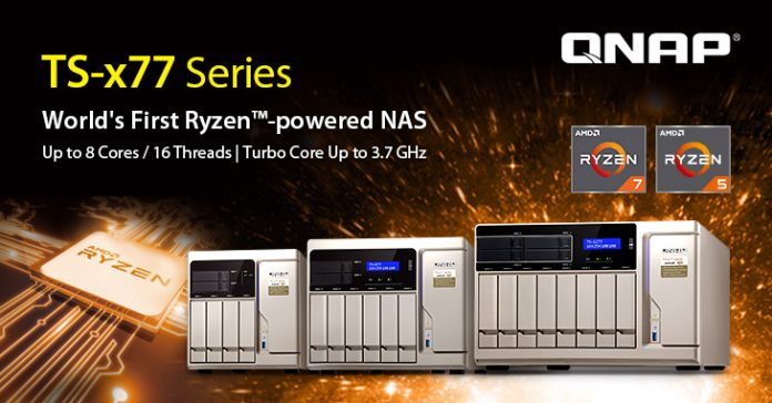 One of the most intriguing NAS systems we have seen in some time has landed. The QNAP TS-x77 is a line of three commercially available NAS units that feature the AMD Ryzen CPUs. Using the AMD Ryzen in these NAS units is not for storage. The primary reason one uses a large CPU in a NAS unit is if you are running multiple server applications on the machine. A 12-bay NAS in 2017 with a 500W PSU is impressive, but not what you would want for low power consumption. At the time with 8 cores, 16 threads and up to 64GB of RAM, QNAP is squarely targeting the SMB / SOHO server space.