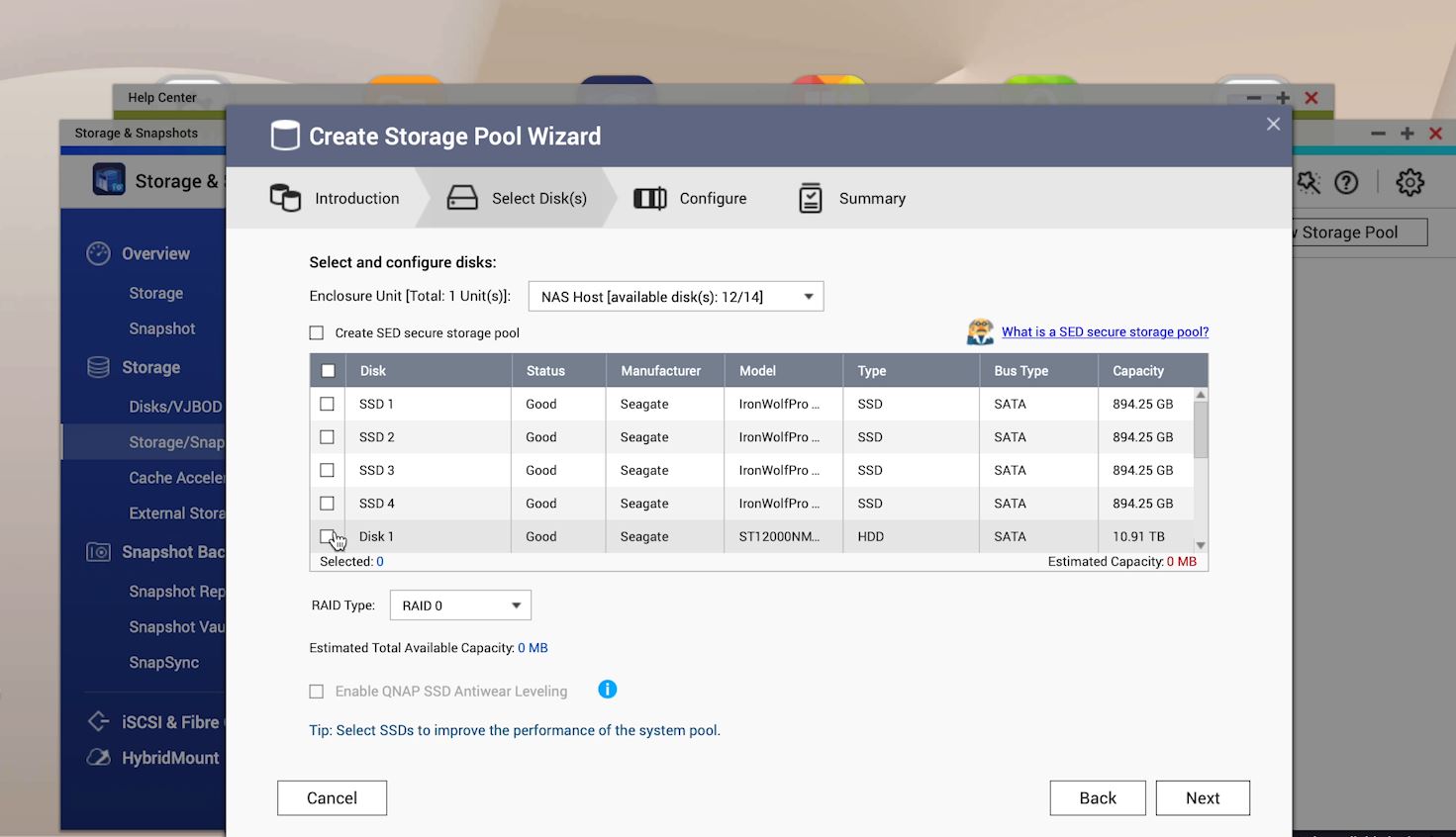 Creating a storage pool is relatively easy in QuTS hero. One can simply select disks and have the Create Storage Pool Wizard and have QNAP’s software configure everything for you. QNAP offers a lot of different options, but one does not need to delve into them. As a quick aside, just as an example of how abstracted the actual functionality of ZFS is to the experience, we did not see ZFS mentioned on this creation wizard.
