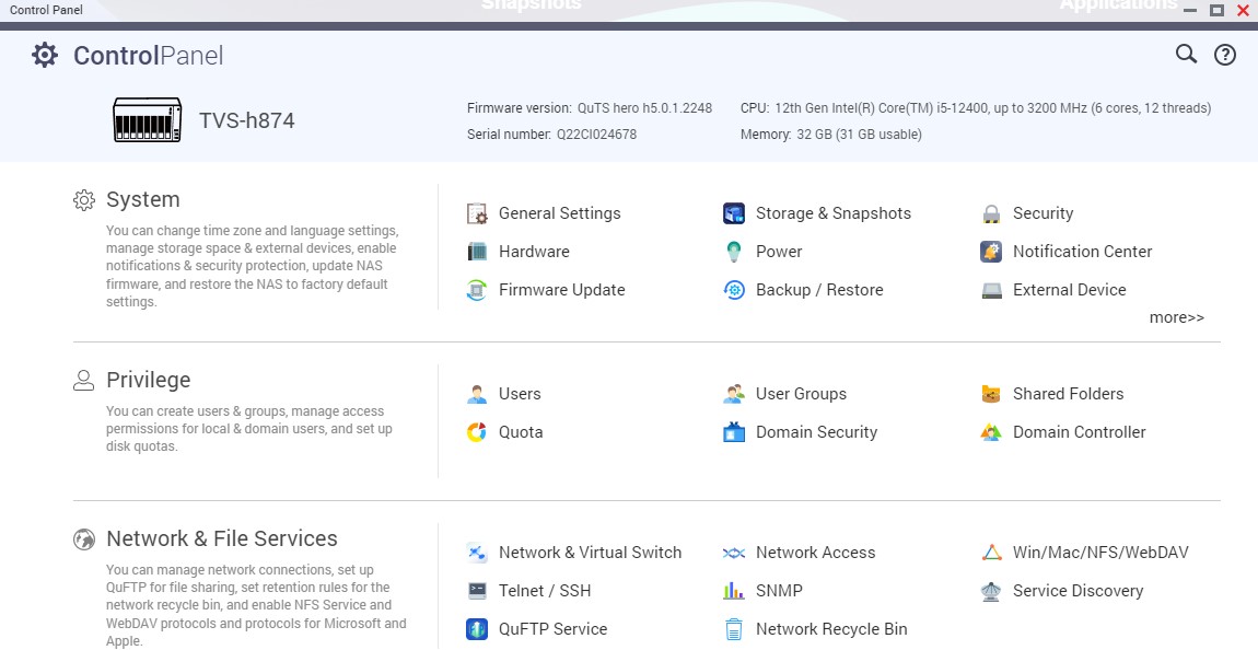 QNAP TVS H874 QuTS Hero 5 Intel Core I5 12400 And 32GB RAM