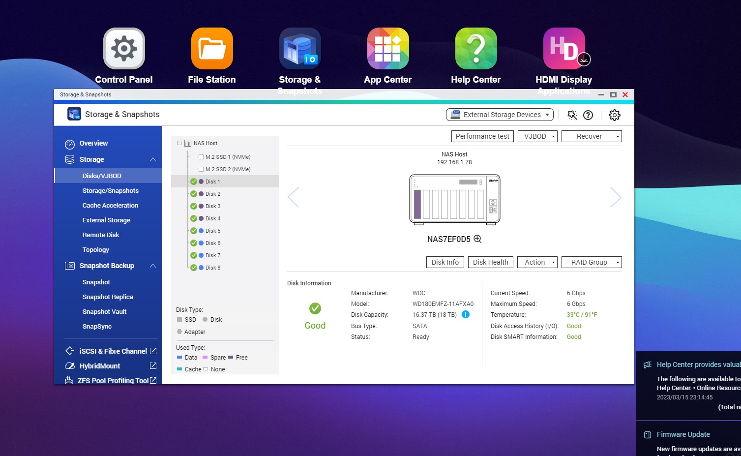 QNAP TVS H874 QuTS Hero 5 Storage And Snapshots Disks