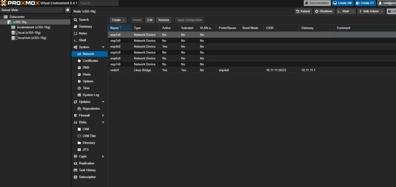 There was, however, something strange. We used enp4s0, the low end of the 2.5GbE NIC range, as a Proxmox VE management NIC so that our management port would fall on one end of the block of four 2.5GbE NICs.