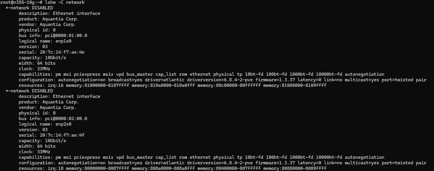 Qotom Q11032H6 N355 10GbE Interfaces Lshw
