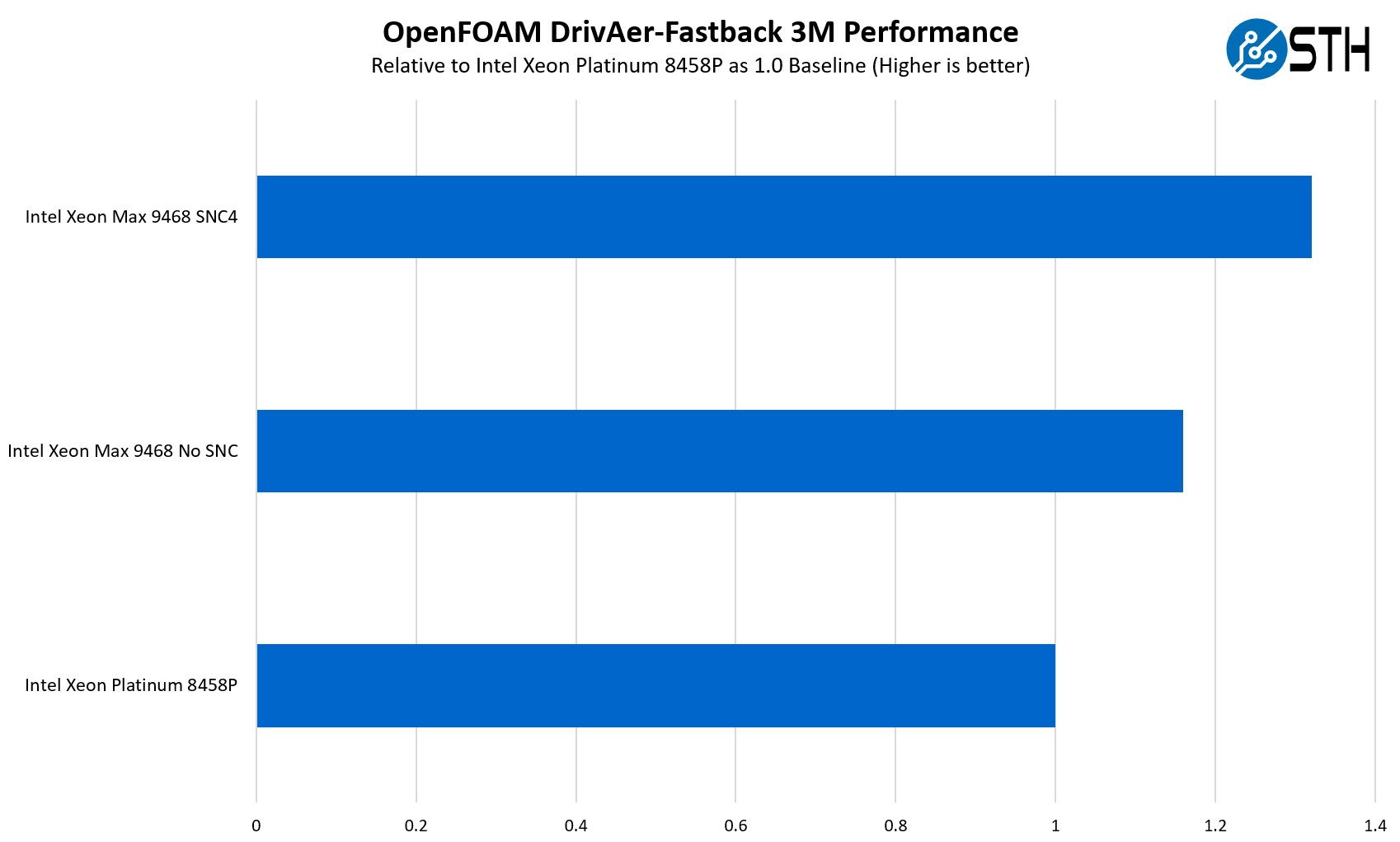 Intel Xeon Max 9468 To Platinum 8458P Performance OpenFoam DrivAer Fastback 3M