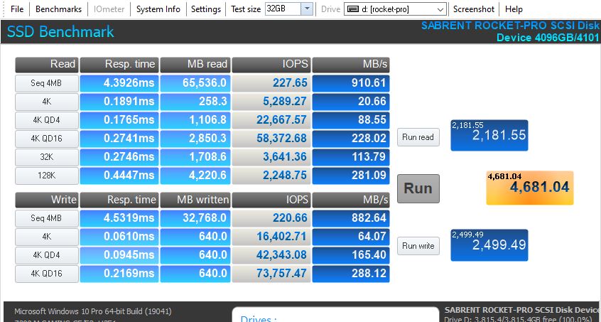 The AS SSD 4K-64T numbers were consistently off as we see here. Still, this is very good performance for a USB 3.2 Gen2 SSD.