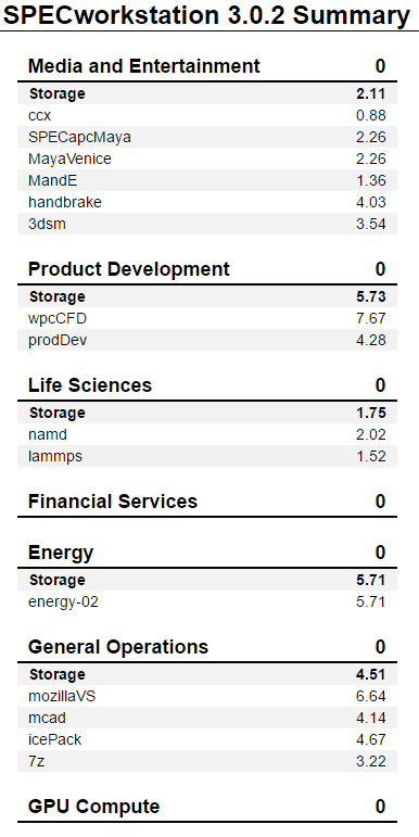SPECworstation benchmark is an excellent benchmark to test systems using workstation type workloads. In this test, we only ran the Storage component, which is fifteen separate tests.