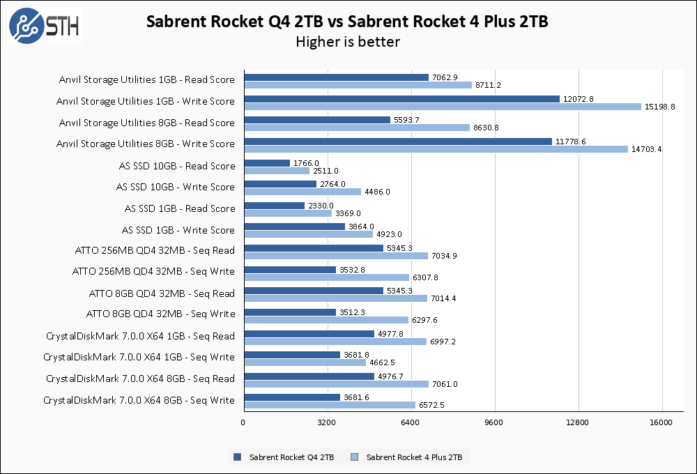 The Sabrent Rocket Q4 2TB is $320, which is $80 less than the flagship Rocket 4 Plus 2TB. That price point also puts the Rocket Q4 2TB on the lower-end of all the PCIe 4.0 NVMe SSDs. However, the Rocket Q4 still maintains a big price premium over PCIe 3.0 SSDs; as an example the PCIe 3.0 Rocket Q 2TB is available for $100 less at $220. What is interesting here is that we are starting to see a bigger price premium on the consumer NVMe side versus the enterprise/ data center NVMe side. Take a look at theĀ Kioxia CD6-L PCIe Gen4 NVMe SSD Review Ending Data Center SATA as an example of where the PCIe Gen4 data center SSDs are now reaching into SATA drive territory on the data center side.