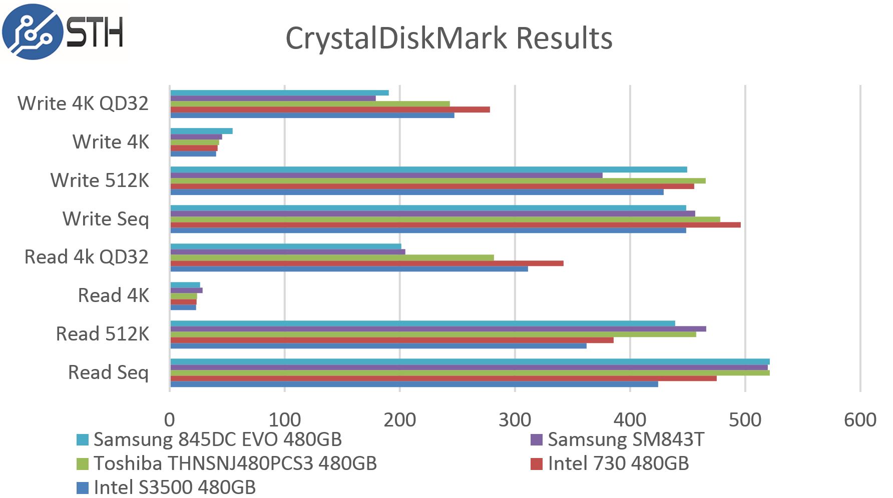 Samsung 845DC EVO 480GB – CrystalDiskMark Benchmark Comparison