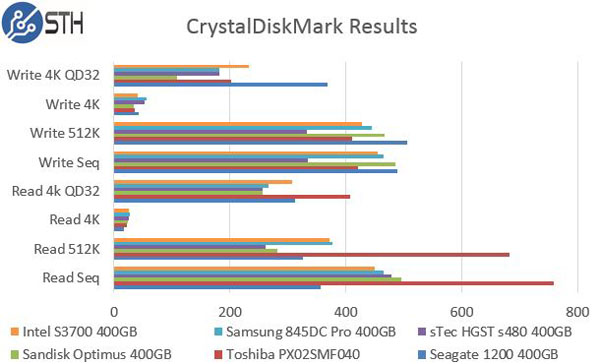 Samsung 845DC Pro 400GB – CrystalDiskMark Comparison