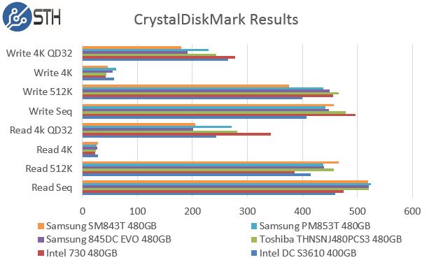 Samsung PM853T 480GB CrystalDiskMark Benchmark Comparison