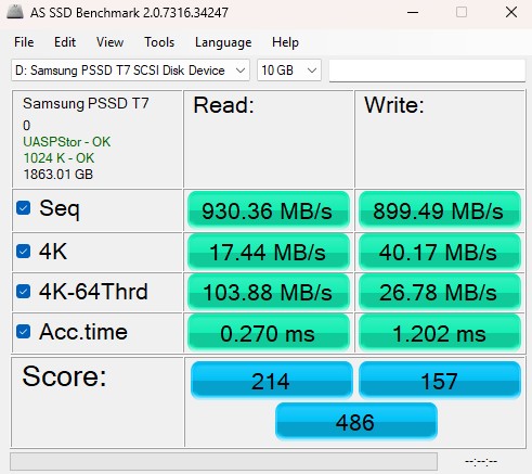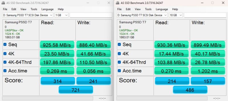 Again, this is a result close to the Samsung T7 Shield, but where the Crucial X9 Pro’s 4K numbers are much better.